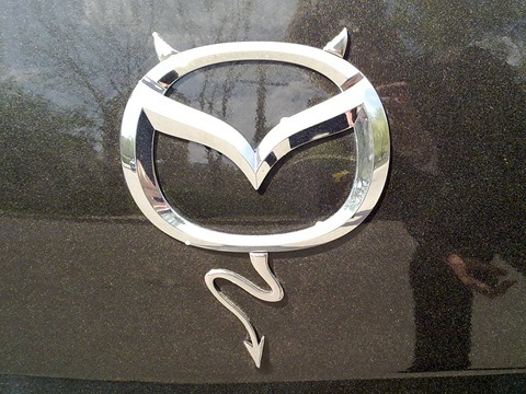 Вчера по дороге домой встретил Mazda 3 c забавно обыгранной темой эмблемы Mazda. Фотка не получилась. Нашел в Сети.
