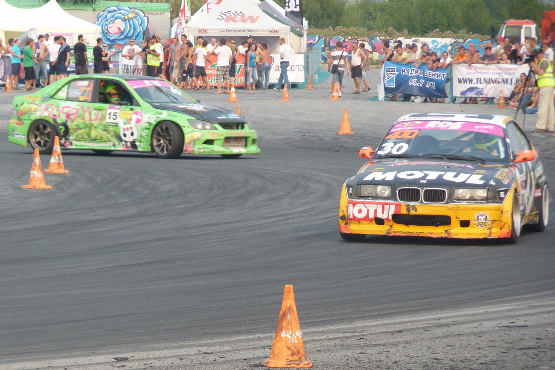 Круг почет перед финалом пятого этапа Российской Дрифт Серии 2010, проходившей в Петербурге на трассе перед торговым центром Северный Молл 7 августа 2010 г.